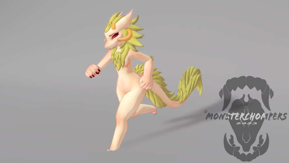 Included in this are the 2D textures, substance painter files, and a unity package with the textures, materials and shaders set up for the body, eyes, face, tails, horns and leg warmers!